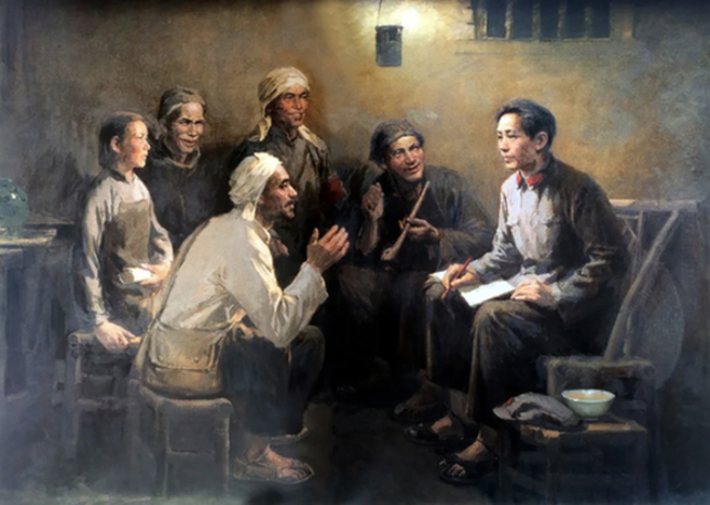 油画《农村调查》 (国家博物馆藏 邓澍/绘)